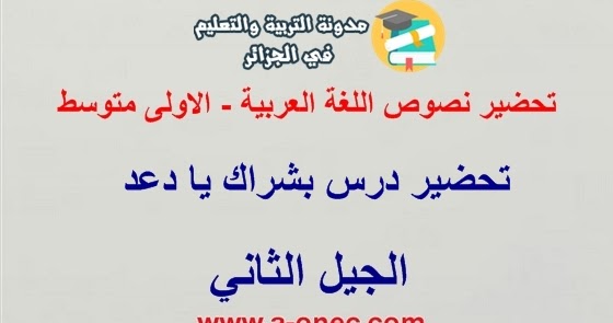 تحضير نص بشراك يا دعد السنة الأولى متوسط الجيل الثاني